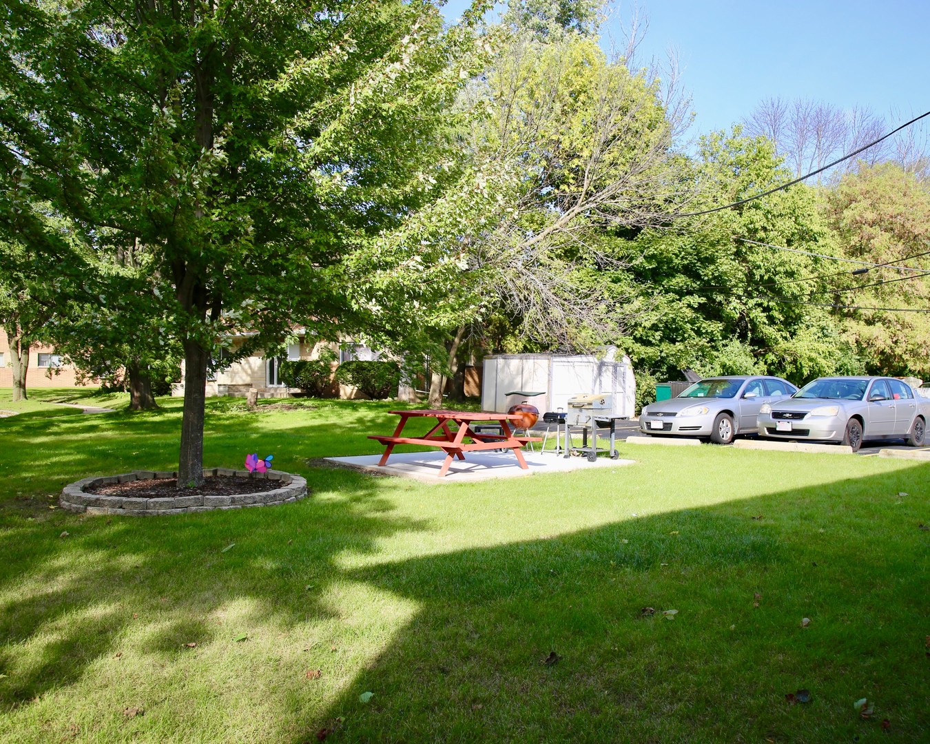 Private 10x10 patio with house picnic table and grill for outdoor gatherings
